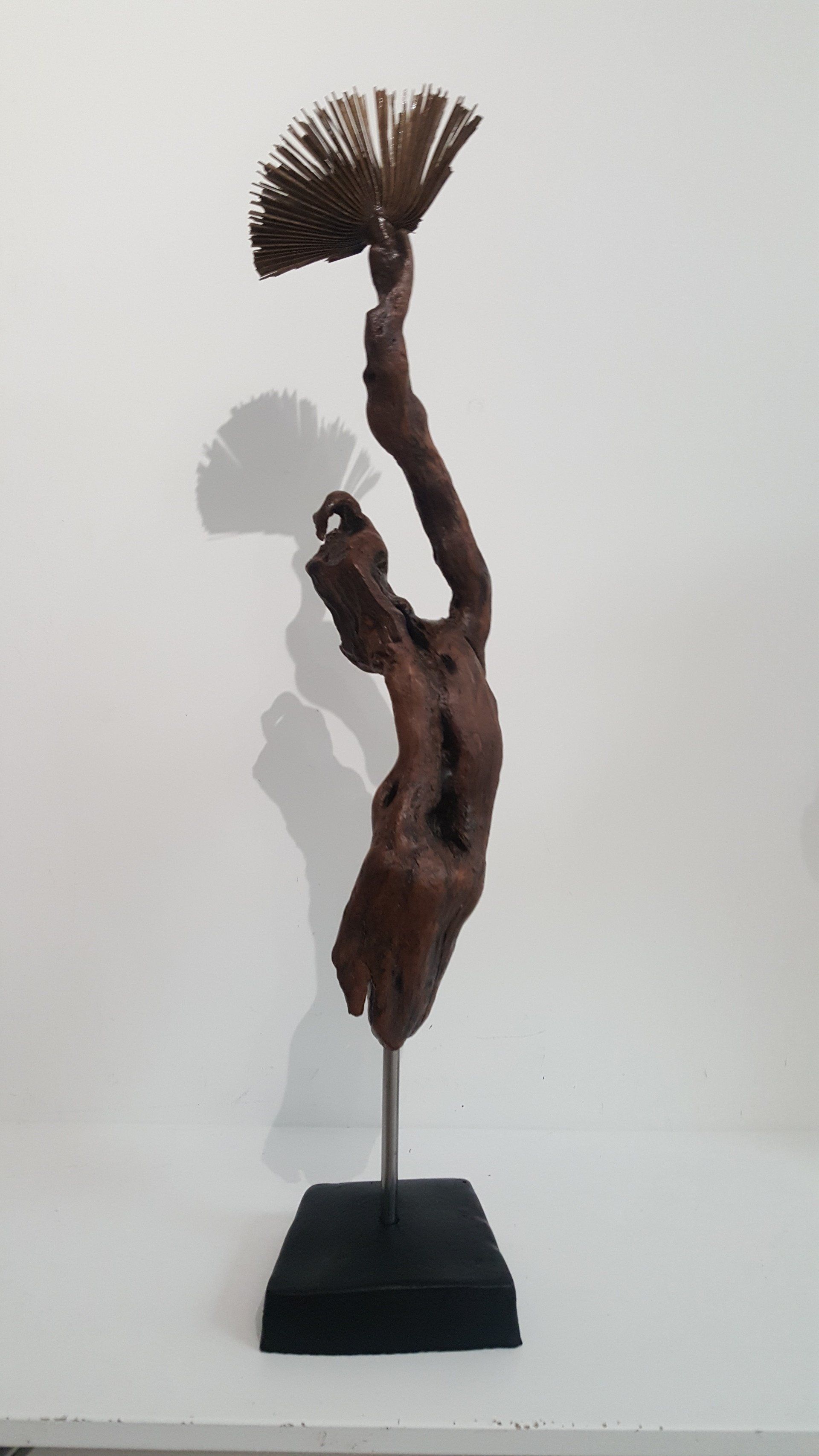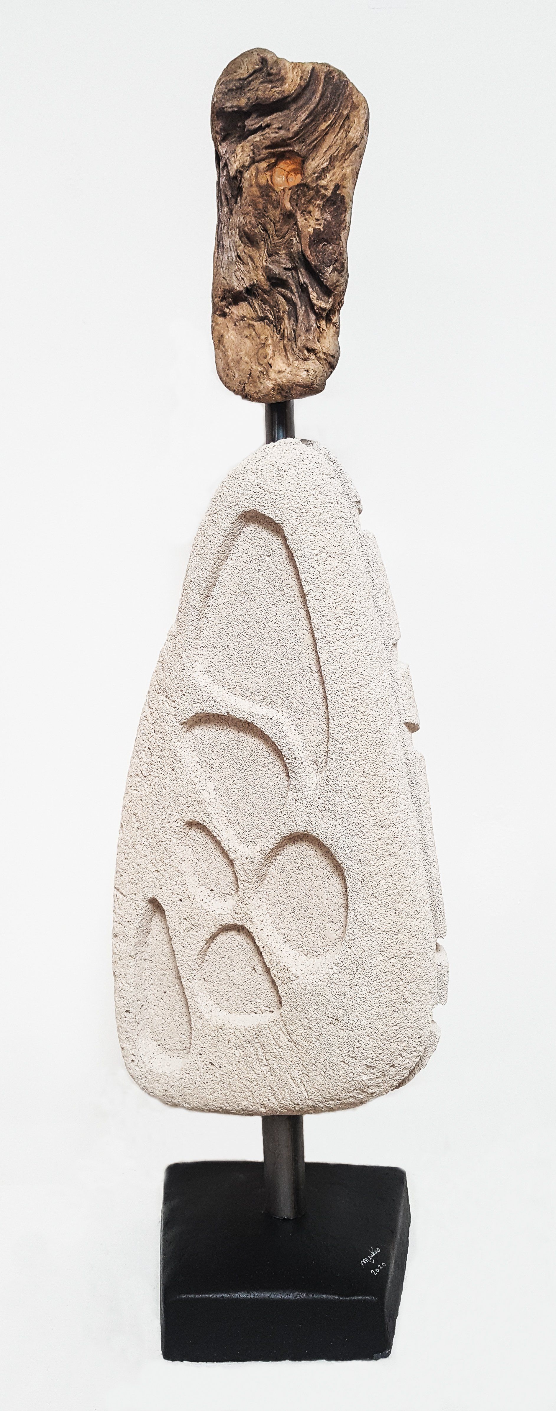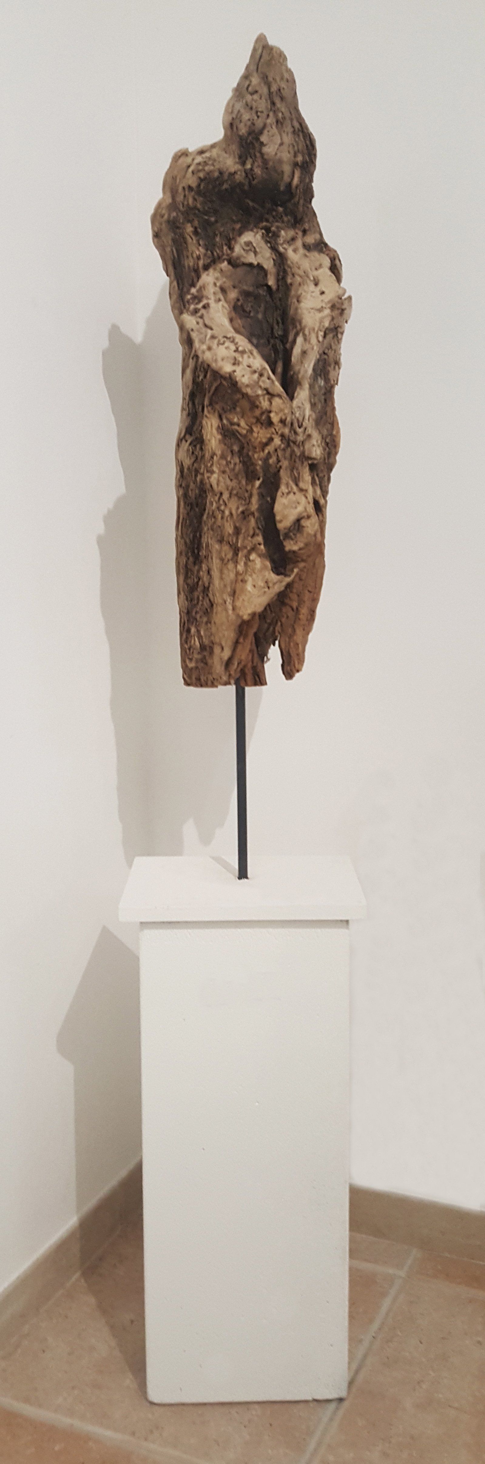 Racine chêne et feuille de palmier socle en pierre 70cm
