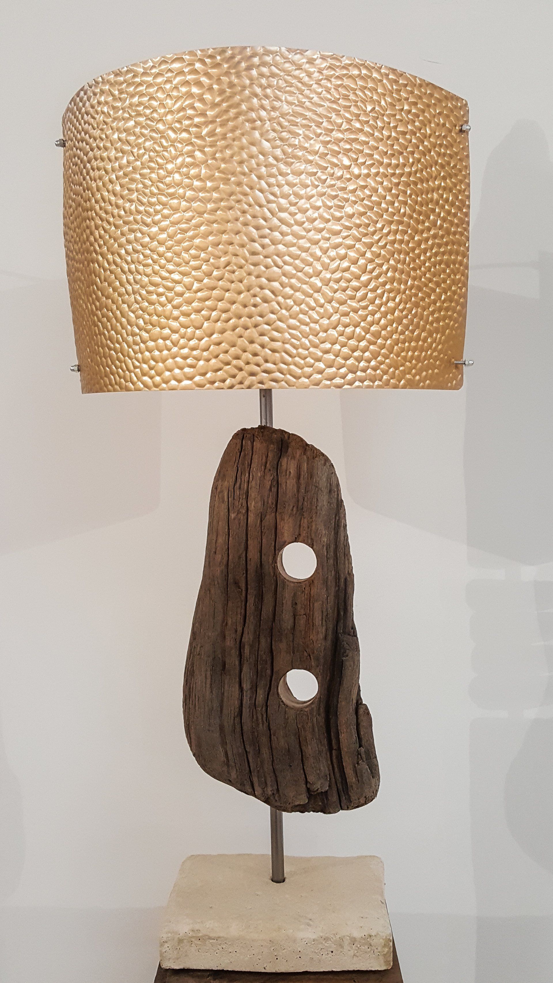 Lampe sans fil. Sculpture murale en bois flotté.